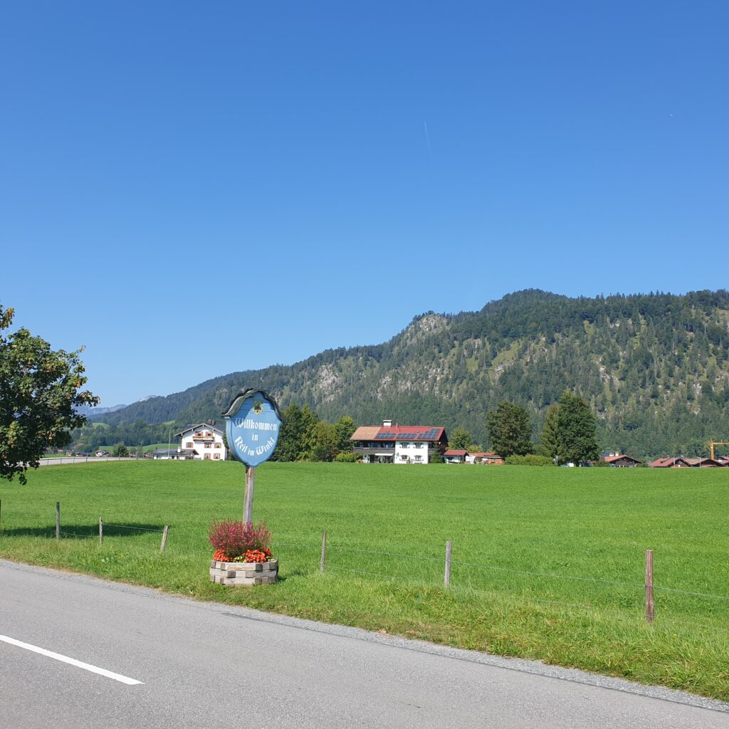 Der Wohnmobilpark „Reit im Winkl“ liegt entlang des Bachlaufs der Schwarzlofer in den Chiemgauer Alpen, mit Blick auf den Unterberg und des Kaisergebirge.